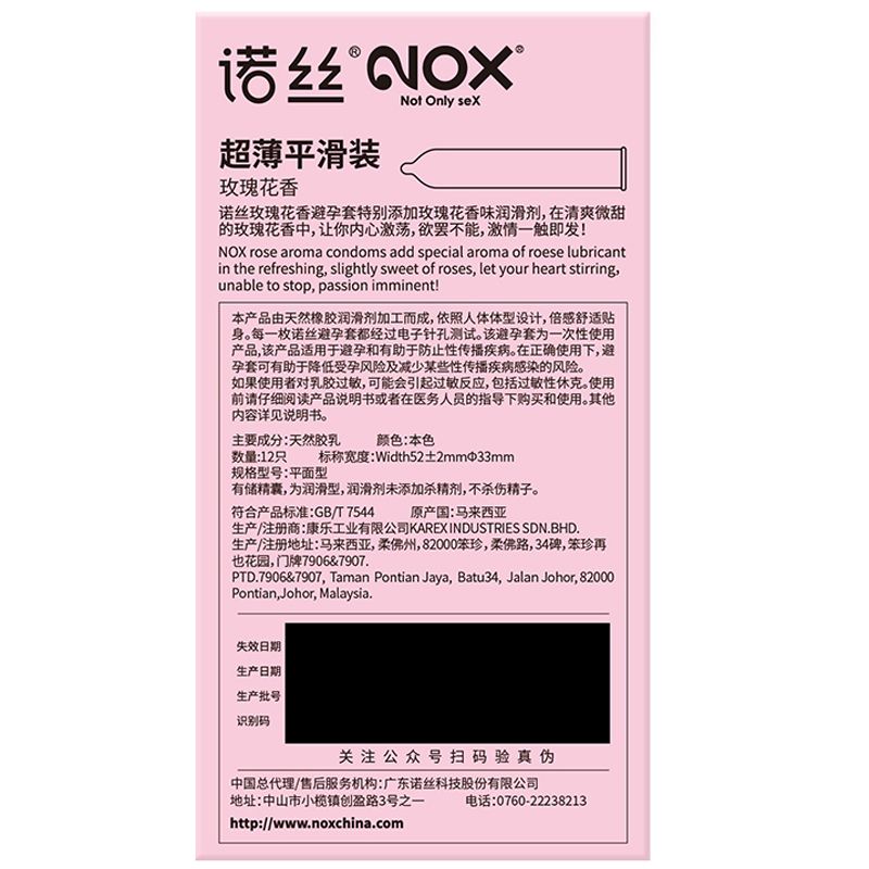 【避孕润滑】诺丝玫瑰花香安全套12只装